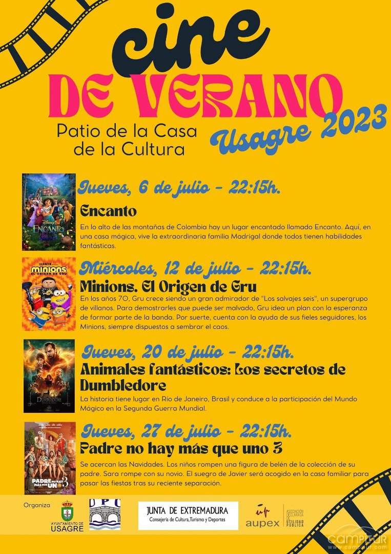 El Ayuntamiento de Usagre ha elaborado un completo programa de proyecciones de cine que sucederán a lo largo de todo este mes de julio.